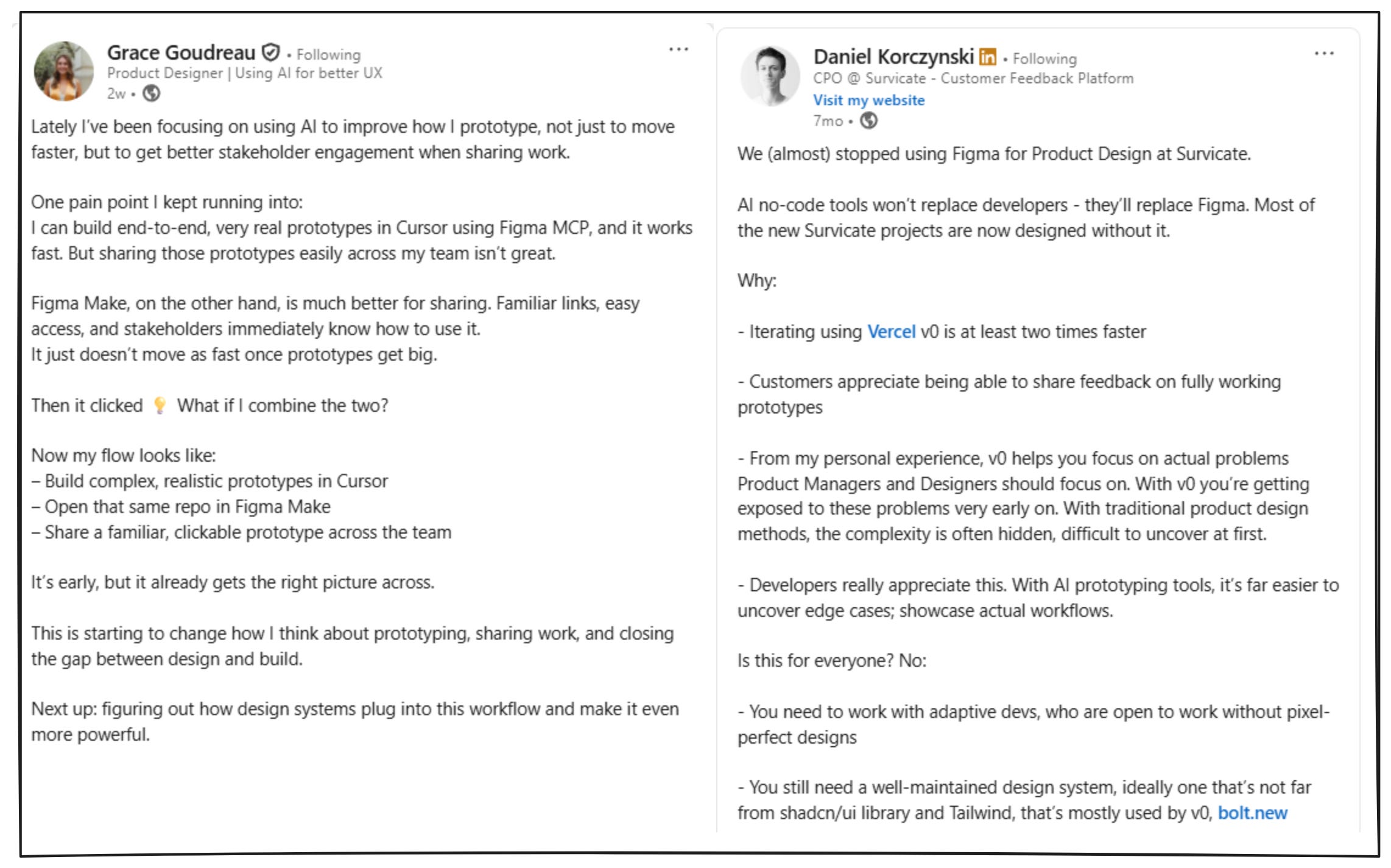 You are iterating on functionality, features, and behavior while everyone is looking at the same working thing. If you can build prototypes that are real enough to think with, you get alignment earlier, you make better calls, and you waste less time arguing in the abstract. Prototypes are becoming table stakes.